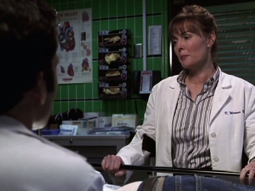 In this episode, Kerry meets her birth mother (Frances Fisher, replacing Sissy Spacek). The adoption angle allows the show to speed-run a coming-out-to-the-parents arc. It's very clunky, everyone is way too articulate and we get lot of speeches. Innes finds the truth in it, but it's not great. But that's just the scenes with Fisher. What makes the episode is the way it shows how this monumental episode affects her professional life. Kerry is the ultimate boss. And incredible doctor and manager who's able to see the whole picture when others can only see two feet in front of them. We see the way that this roller-coaster experience makes her worse at her job, too harsh and too scattered. But Kerry is still the boss, and never more so than when she returns to work after she comes out to her Evangelical birth mother. In this episode, she handles several complex cases (including a woman with dementia and a pair of demerol addicts), gives unheralded intern Sara Gilbert an opportunity to shine, and subtly forces Dr. Pratt to pull his head out of his ass. And all that is possible because she owned her queerness wasn't easy. It made her a better person and doctor.