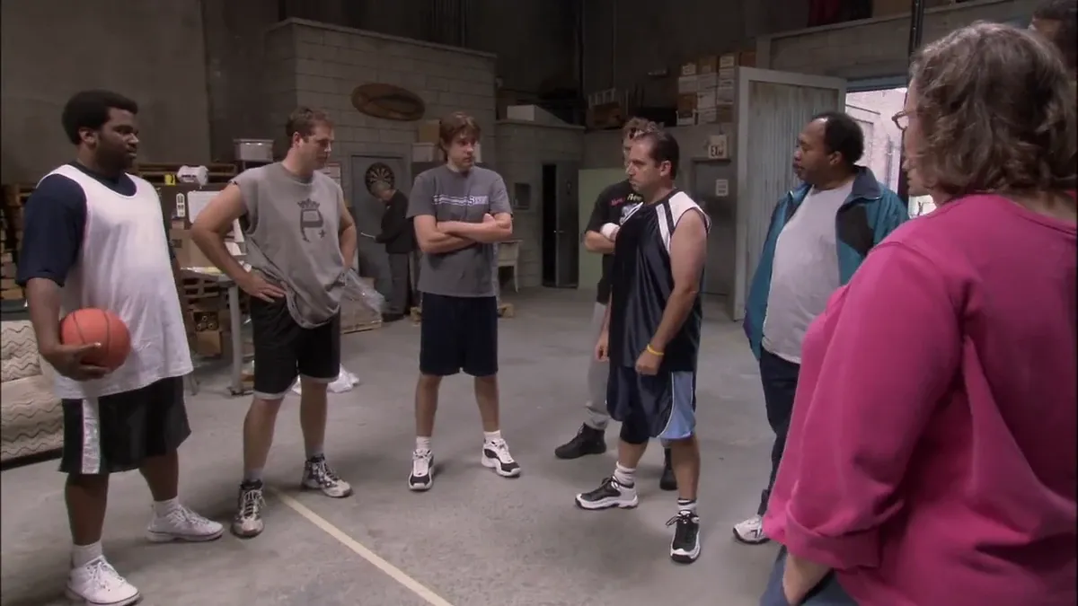 And so we take our first trip to the warehouse! We teased the location with Driwght's excursion in "The Alliance", but this feels like its true debut. The warehouse is a fertile source of blue collar/white collar tensions. Our male corporate drones feel inferior to the warehouse guys (especially Michael), but at the same time they have real power over them (again, especially Michael). That combination of perceived inferiority and hard power is noxious. The toxicity of this dynamic is really obvious in this episode, and it makes Michael truly unbearable. The show's upstairs/downstairs dynamic would be less obvious and more equal in future seasons, especially once Craig T. Robinson's Darryl emerged as a breakout character.